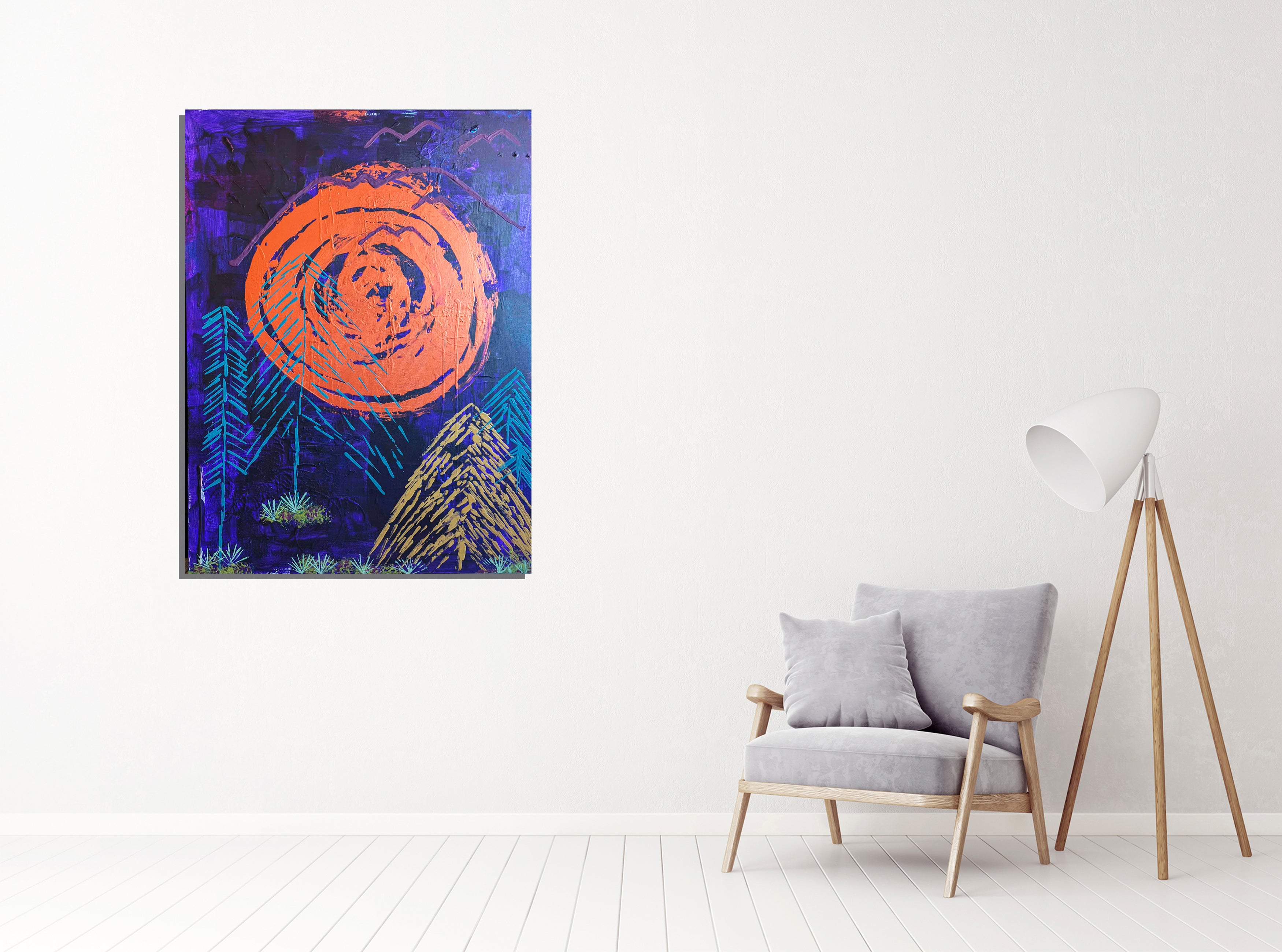 This painting will be packed in a protective tube and must be stretched on a canvas on the customer's end. To avoid unnecessarily large shipping costs paintings above 30 inches will be shipped as a rolled canvas protected in a mailing tube to avoid damage and will require the customer to make framing arrangements upon arrival.